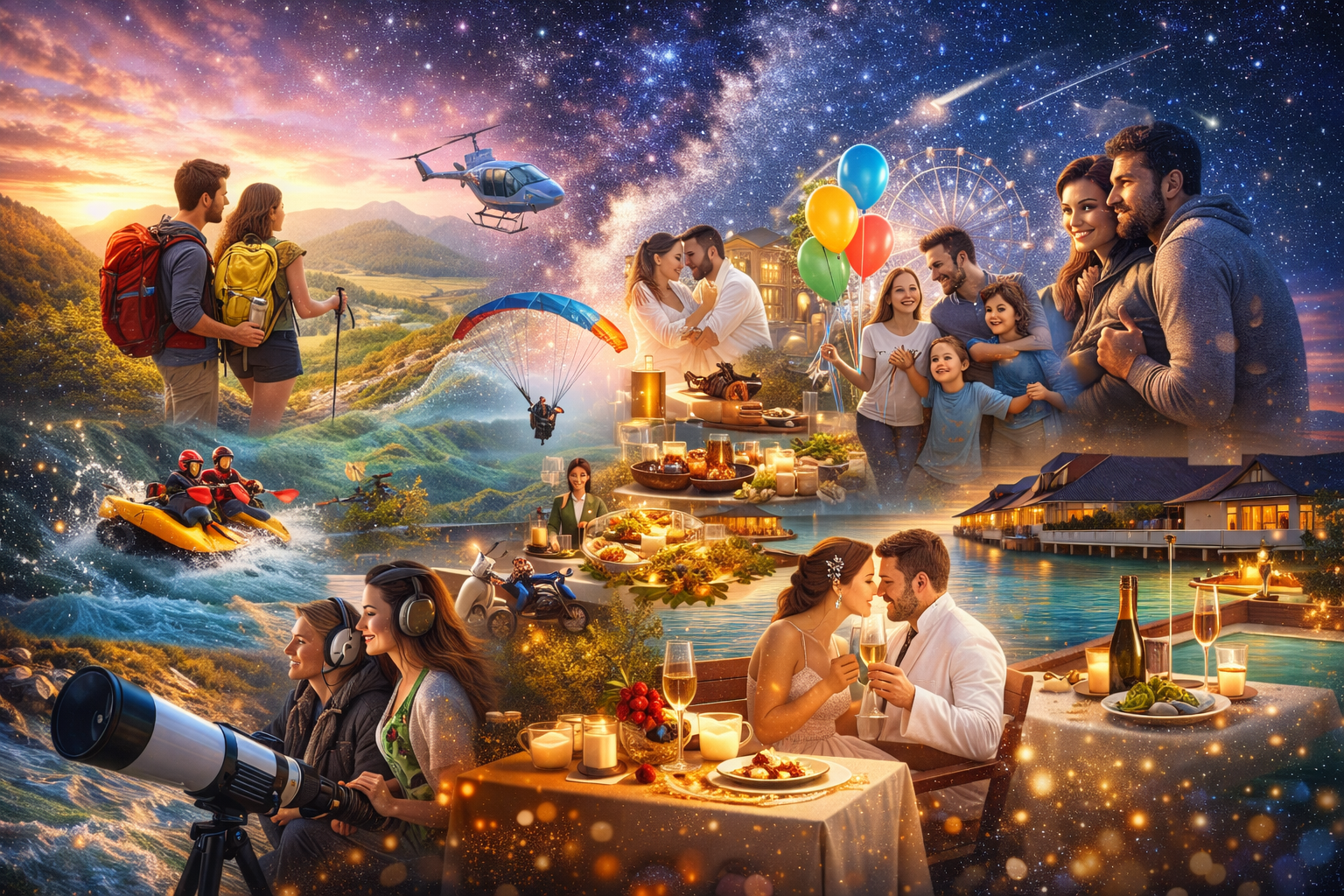 Somos una empresa especializada en crear cajas y packs de experiencias únicas, pensadas para regalar y disfrutar momentos inolvidables. Ofrecemos desde visitas a zoos, spas y parques de atracciones, hasta catas de vino, escapadas y experiencias de bienestar y aventura.